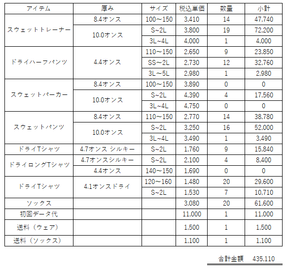 3月上旬ソックス納品⇒4月上旬までに支払い(73,700円)